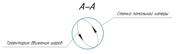 В процессе работы мельницы шары двигаются по траектории эллипса (из этого происходит название мельницы. (Рис.2)